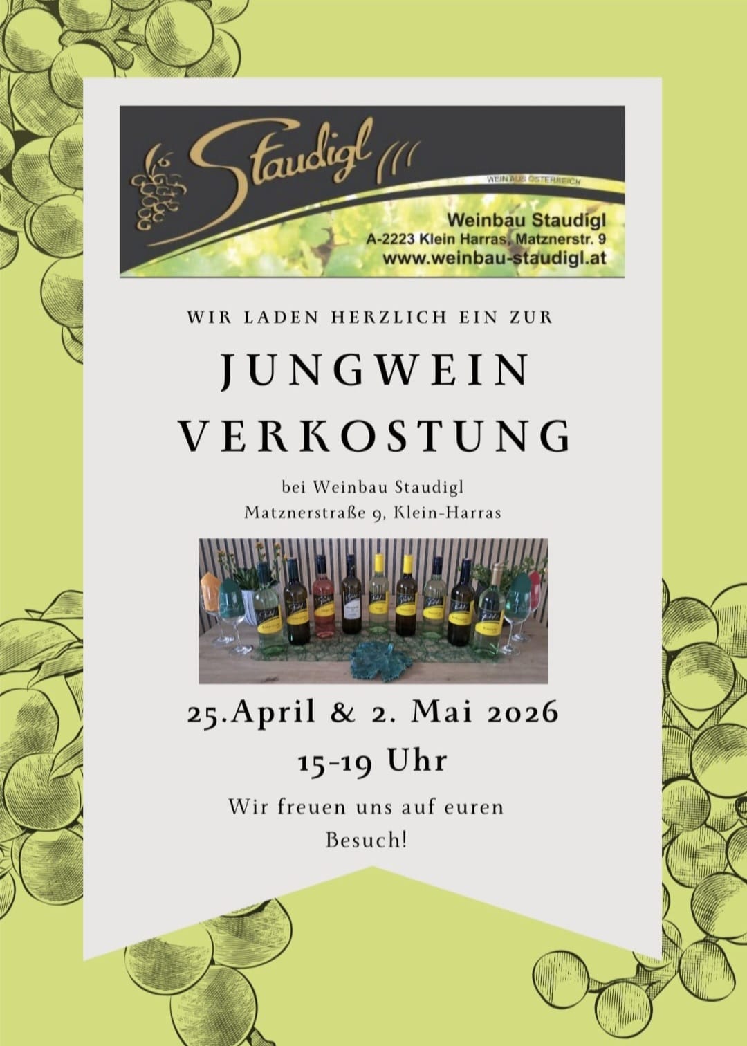 Startseite Neuigkeiten 14. April 2026 JUNGWEINVERKOSTUNG 31. März 2026 Der NEUE JAHRGANG ist da 1. November 2025 Der erste 25er 1 2 Nächste Seite